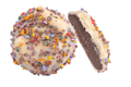 Een donkere basis met daarop Chocoladepasta en crunchy stukjes M&M. Omhuld met witte chocolade.