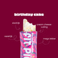 Een romige vanillebasis, gevuld met een zachte cream cheese vulling en omhuld met een laag witte chocolade.