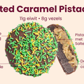 Een heerlijke combinatie van zoete salted caramel en pistache. Vol van smaak, licht zout en met die nootachtige twist die ’m extra lekker maakt.