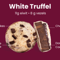 Ken je die heerlijkheden met cacao poeder omhuld? Dat in een bar.. een gigantische truffel met vezels en eiwitten! Maar let op.. deze is niet met melk chocolade maar wit! In een perfect formaat om mee te nemen.